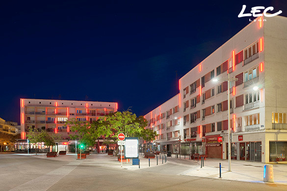 The special adaptation of the 5620-Brunei at Aristide Briand place, flush-embedded wall strip light was developed to meet the designer's requirements for 180° visibility and concealed connections.